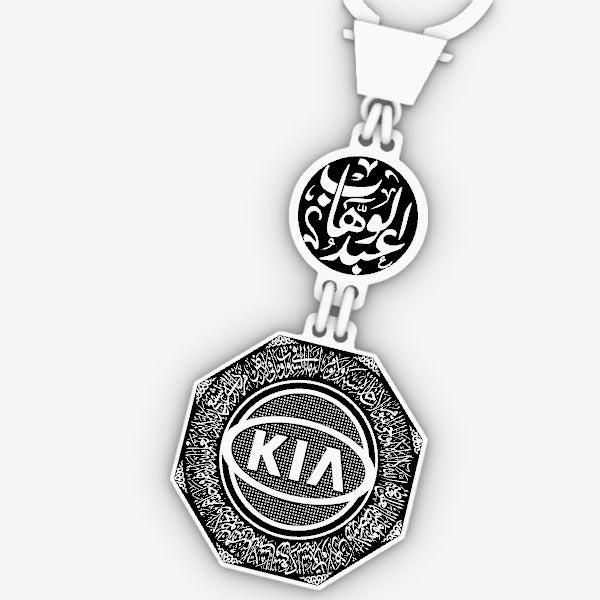 ميدالية فضة بيور وجهين شعار السيارة هاند ميد وحفر ليزر بالاسم الشخصي KIA كيا