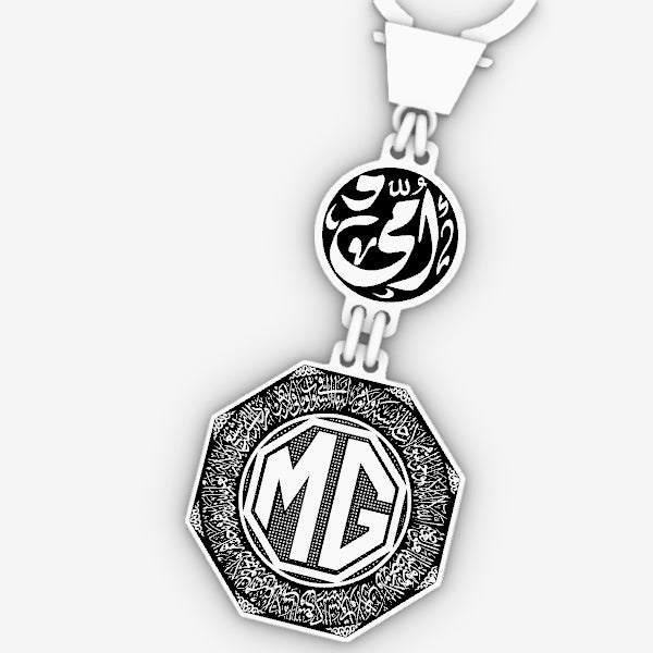 ميدالية فضة بيور وجهين شعار السيارة هاند ميد وحفر ليزر بالاسم الشخصي MG ام جي