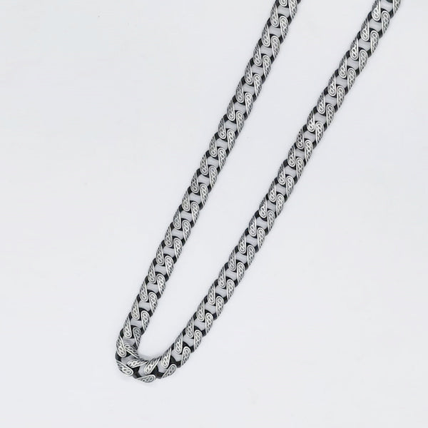 سلسلة رجالي فضة بيور عيار 925 ماط مع اكسيد شكل جروميت منقوشة بالكامل ناعمة موديل تايلاندي