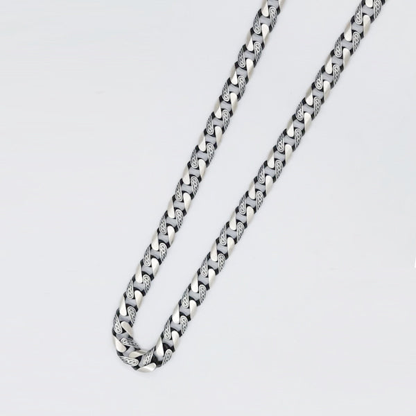 سلسلة رجالي فضة بيور عيار 925 ماط مع اكسيد شكل  جروميت منقوشة ناعمة موديل تايلاندي